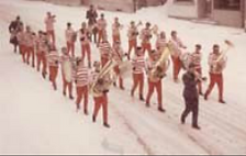 Da nicht viel Zeit blieb das Können der Musikanten auf einen gehobenen Stand zu bringen, beschränkte man sich auf einige bekannte Stücke wie Guete Sunntig mitenand, Hau a de Chatz de Schwanz ab oder den legendären Totenmarsch aus dem New Orelans Function von Louis Armstrong. Othmar Weber gab den Ton an und Châlet Wisel (ALOIS ELSENER) wurde, da für Ihn kein Instrument vorhanden war, zum ersten Tambourmajor erkoren.